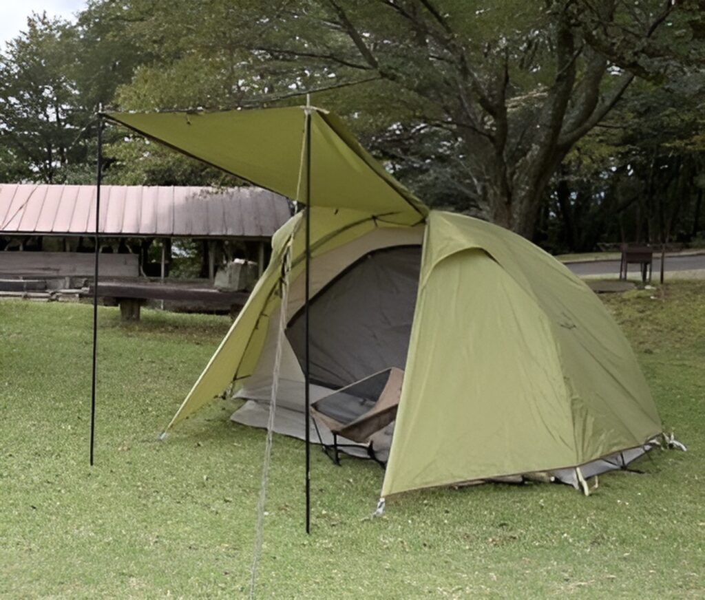 雨キャンプといえば「タープ」があると快適ですが、設営・撤収に時間がかかります。